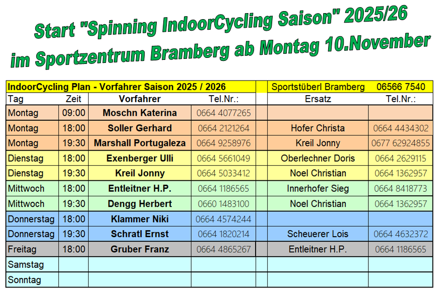 Die Smaragdbiker Spinning Saison 2025/26 startet wieder am 10. November im Sportstüberl Bramberg.
